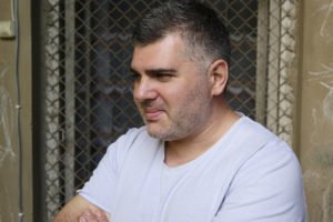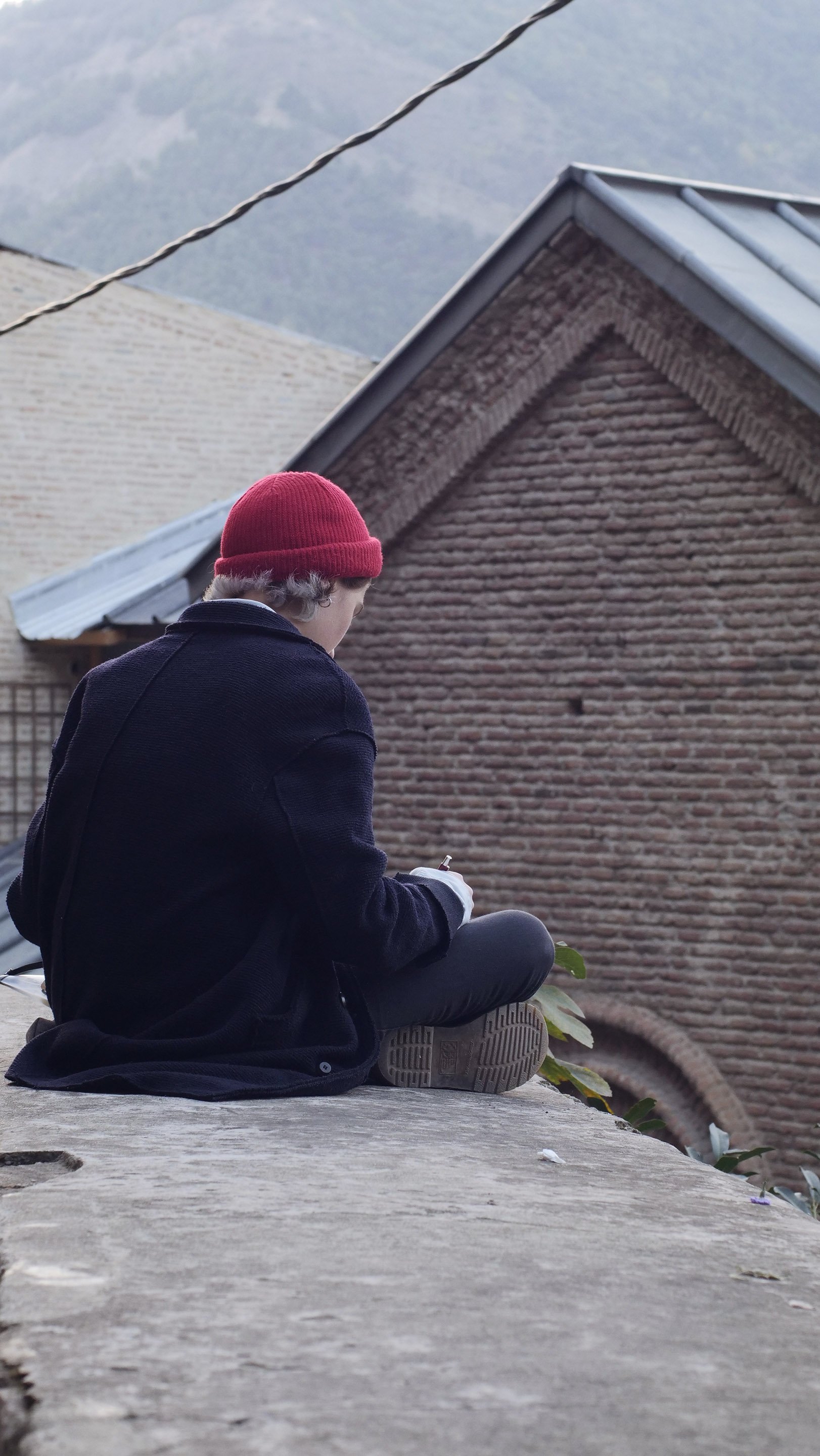 An art student outside Betlemi church
