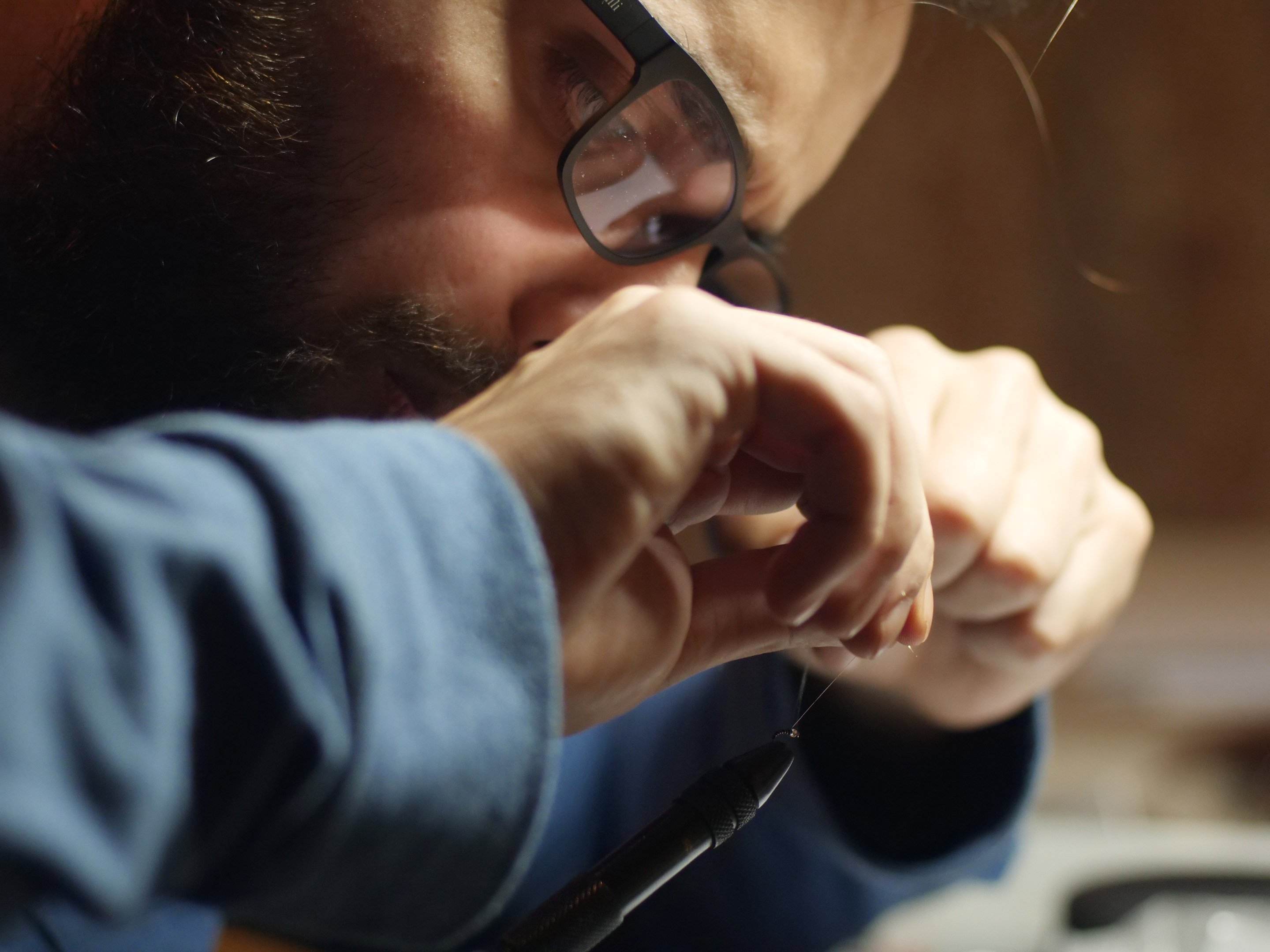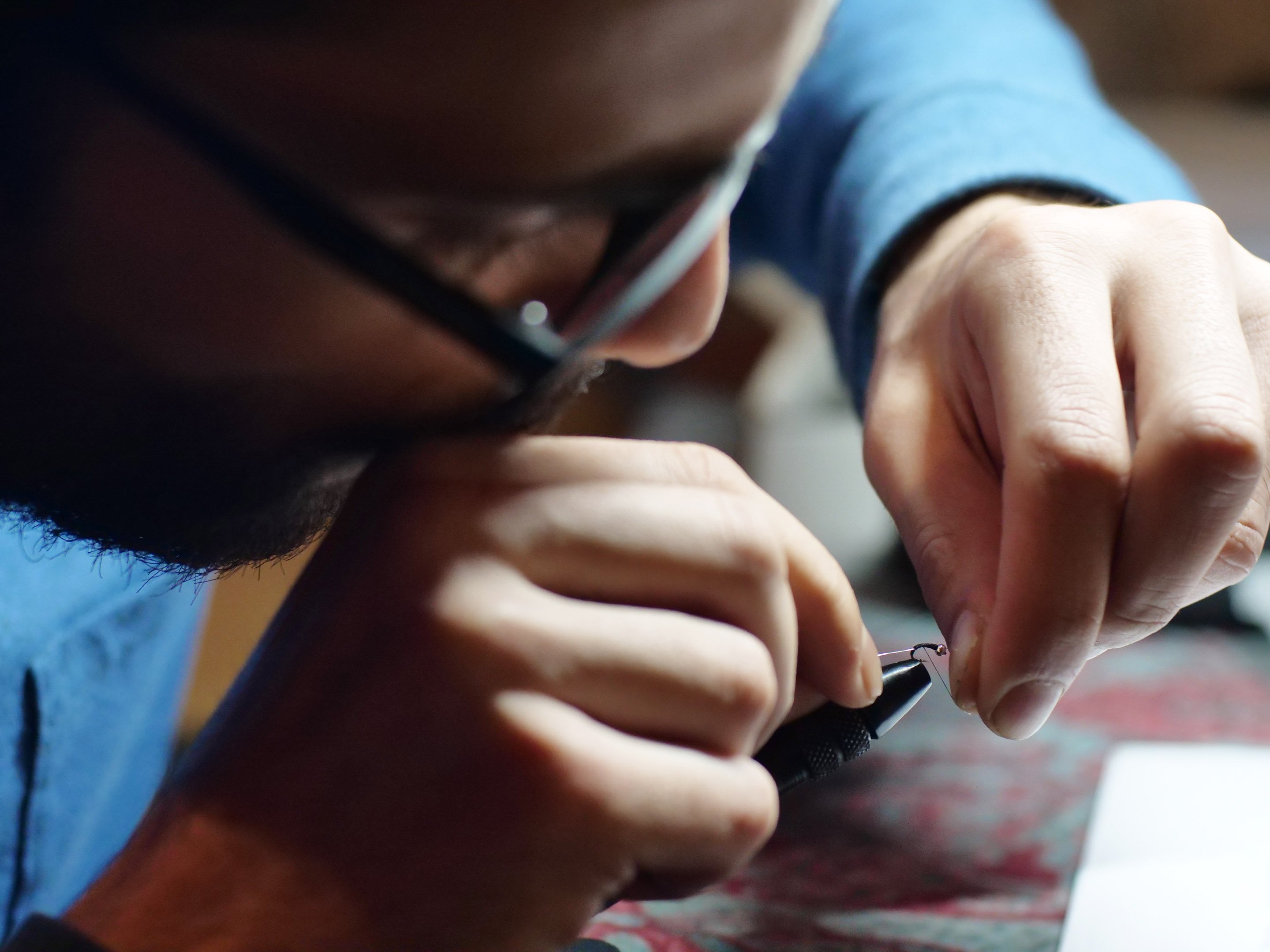 Sandro tying fly hook